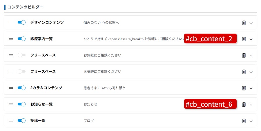 「#cb_content_〇」では、上から何番目のコンテンツに対して調整したいかを指定します。