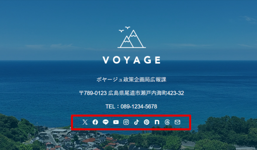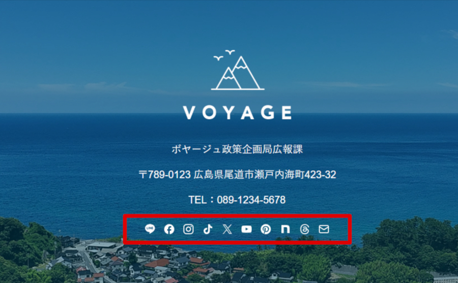 表示されているSNSアイコンに合わせて並び順をご調整ください。orderの数値が小さいものから左に並びます。